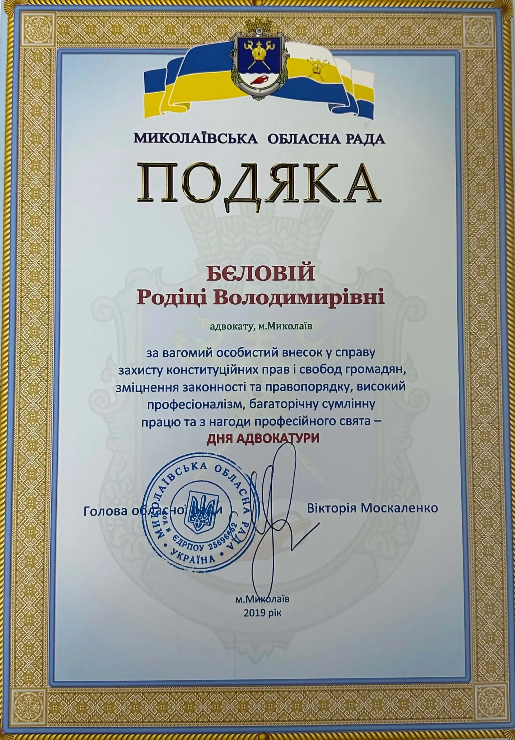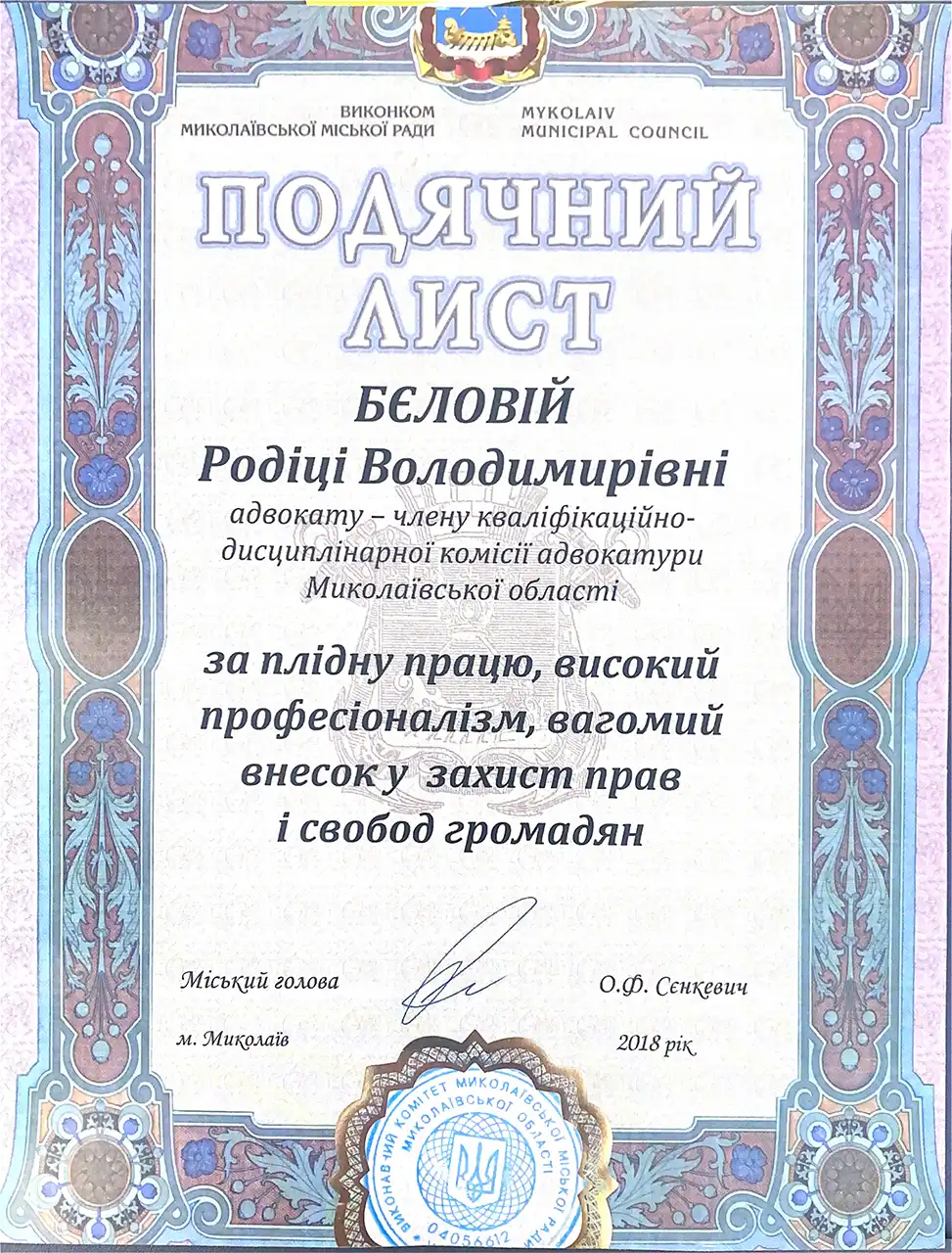 Вітаю, мене звати Бєлова Родіка Володимирівна. Я “Видатний адвокат України”, кваліфікований фахівець-юрист (правознавець магістр) з 24-ти річної юридичною практикою і 18-ми річної адвокатською практикою в області податкового і господарського права, корпоративного права, цивільного права, фінансового права, банківського права, земельного права, трудового права, адміністративного права, кримінального права та процесу.